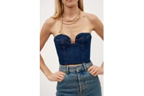 RRP $990 Size 34 Magda Butrym Navy Denim Bustier...