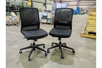 Office chairs, black adjustable with a mesh back...