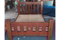 Solid pine queen bed teak color all fittings