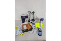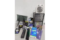 Assorted office supplies, including fan heaters,...