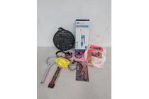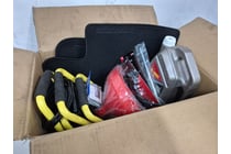 Assorted hardware tools, includes car jumper...
