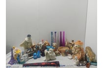Assorted toys and teddy bears. Note: Signs of...