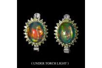 NATURAL RAINBOW FIRE OPAL & SAPPHIRE EARRINGS...