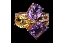 9CT YELLOW GOLD AMETHYST AND DIAMOND RING...