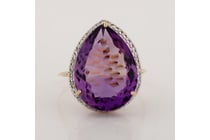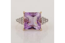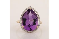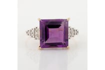 9CT YELLOW GOLD NATURAL AMETHYST & DIAMOND RING...