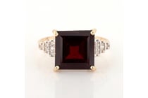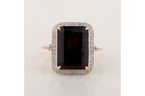 9CT YELLOW GOLD NATURAL GARNET & DIAMOND RING...