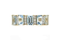 14K YELLOW GOLD, AQUAMARINE AND DIAMOND, TRILOGY...