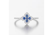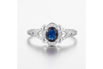 14K WHITE GOLD, BLUE SAPPHIRE AND DIAMOND,...
