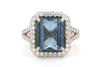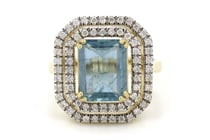 14K YELLOW GOLD, AQUAMARINE AND DIAMOND, CLUSTER...