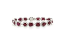 14K WHITE GOLD, RUBY AND DIAMOND, HALO BRACELET....
