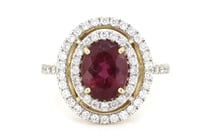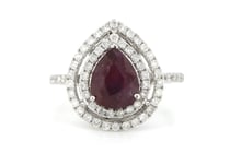 14K WHITE GOLD, RUBY AND DIAMOND, DOUBLE HALO...
