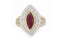 14K ROSE/WHITE GOLD, RUBY AND DIAMOND, HALO RING....