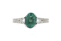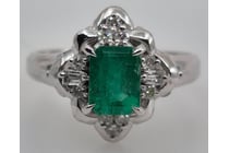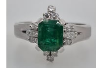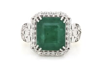 PLATINUM EMERALD AND DIAMOND RING Featuring 1...