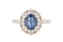 14K ROSE GOLD, BLUE SAPPHIRE AND DIAMOND, HALO...
