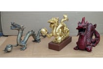 FENG SHUI MALE DRAGON FIGURINES, BRASS, RESIN AND...