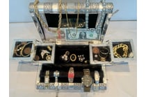 JEWELLERY BOX WITH COLLECTABLE BANKNOTES, COINS &...