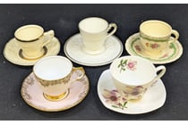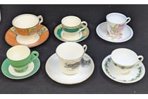 6 DEMITASSE AND TEA DUOS, MOSTLY ENGLISH MAKERS....