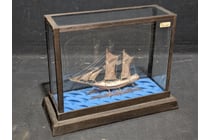 MINIATURE SILVER FILIGREE SAILING SHIP IN DISPLAY...