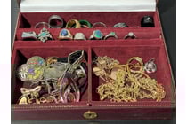 JEWELLERY BOX WITH ASSORTED JEWELLERY &...