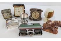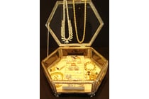ESTATE GLASS JEWELLERY BOX WITH ASSORTED...
