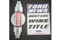 SIGNED FORD NEWS POSTER AND TIN REPCO GARAGE...