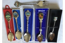 5 TEASPOONS + 1 FORK SOUVENIERS EPNS 5 Teaspoons...
