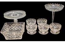 ASSORTED CUT GLASS SERVING AND DESSERTWARE SET –...