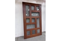 Door, Brown Timber frame, Abstract glass pattern,...