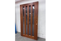 Door, Brown Timber Frame, Striped tinted Glass...