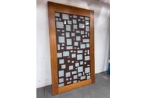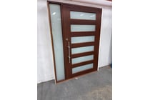 Door, Brown Timber frame, Lined patterned glass,...