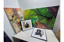 Assorted artwork. Dims: 49cmx47cmx2cm (dog...