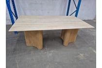 Dining Table, Large Marble Top, Tri-Curved Timber...
