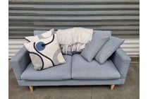 2 Seater Sofa, Light Blue Fabric and Wooden Legs...