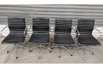 Eames Office Chairs, Ribbed Leather Seat with...