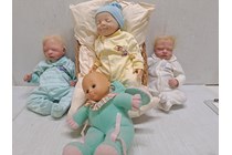 Dolls, 4 x dolls includes baby in basket, newborn...