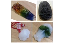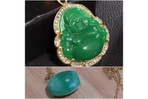 GREEN JADE PENDANT AND RESIN HAPPY BUDDHA PENDANT...