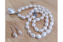 WHITE FRESHWATER PEARL NECKLACE AND EARRINGS...