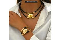 GOLD STAINLESS STEEL BLACK CORD NECKLACE AND...