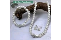 6 X PIECES FAUX WHITE PEARLS NECKLACE BRACELET...