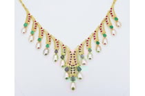 NATURAL RUBY, EMERALD & PEARL NECKLACE ON 925...