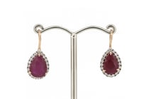 14K ROSE GOLD, RUBY AND DIAMOND, HALO EARRINGS....