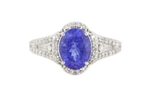 14K WHITE GOLD, TANZANITE AND DIAMOND, HALO...