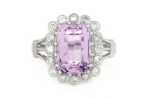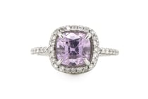 14K WHITE GOLD, KUNZITE AND DIAMOND, HALO RING....