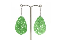 14K YELLOW GOLD, JADE AND DIAMOND, DROP EARRINGS....