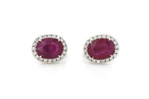 14K WHITE GOLD, RUBY AND DIAMOND, HALO STUD...