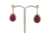14K ROSE GOLD, RUBY AND DIAMOND, HALO DROP...