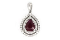 14K WHITE GOLD, RUBY AND DIAMOND, HALO DROP...