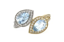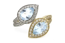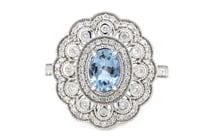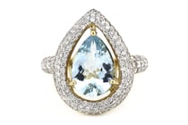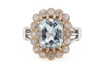 14K WHITE & ROSE GOLD AQUAMARINE AND DIAMOND HALO...