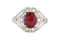 14K WHITE GOLD, RUBY AND DIAMOND, ANTIQUE...