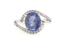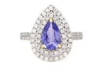 14K WHITE GOLD, TANZANITE AND DIAMOND, HALO RING....